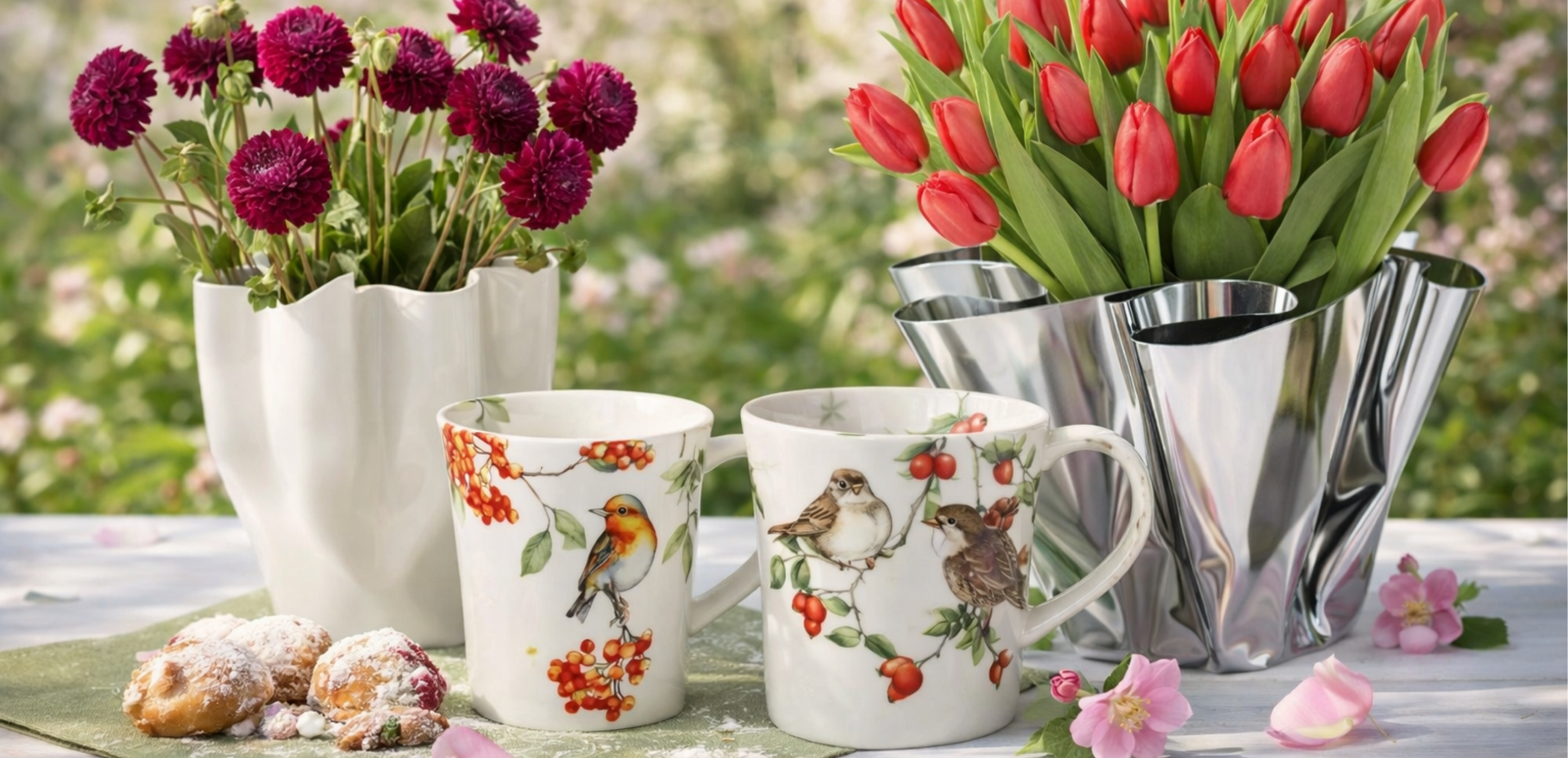 Lassen Sie die ersten warmen Sonnenstrahlen in Ihre Räume und verleihen Sie Ihrem Zuhause neue Leichtigkeit. Mit stilvollen Vasen, zarten Farben und hochwertiger Indoor-Dekoration bringen Sie den Frühling direkt nach drinnen. Entdecken Sie zeitloses Design und liebevolle Details, die Ihr Zuhause zum Strahlen bringen und eine Atmosphäre schaffen, in der Sie sich rundum wohlfühlen.