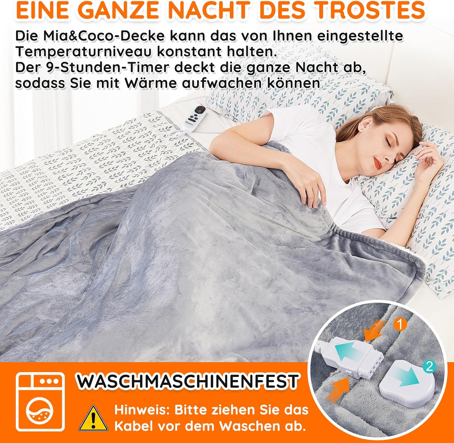 Die Heizdecke ist pflegeleicht und maschinenwaschbar: Einfach die Stromleitung entfernen und die Decke gemäß den Anweisungen reinigen. Perfekt für gemütliche, warme Stunden.