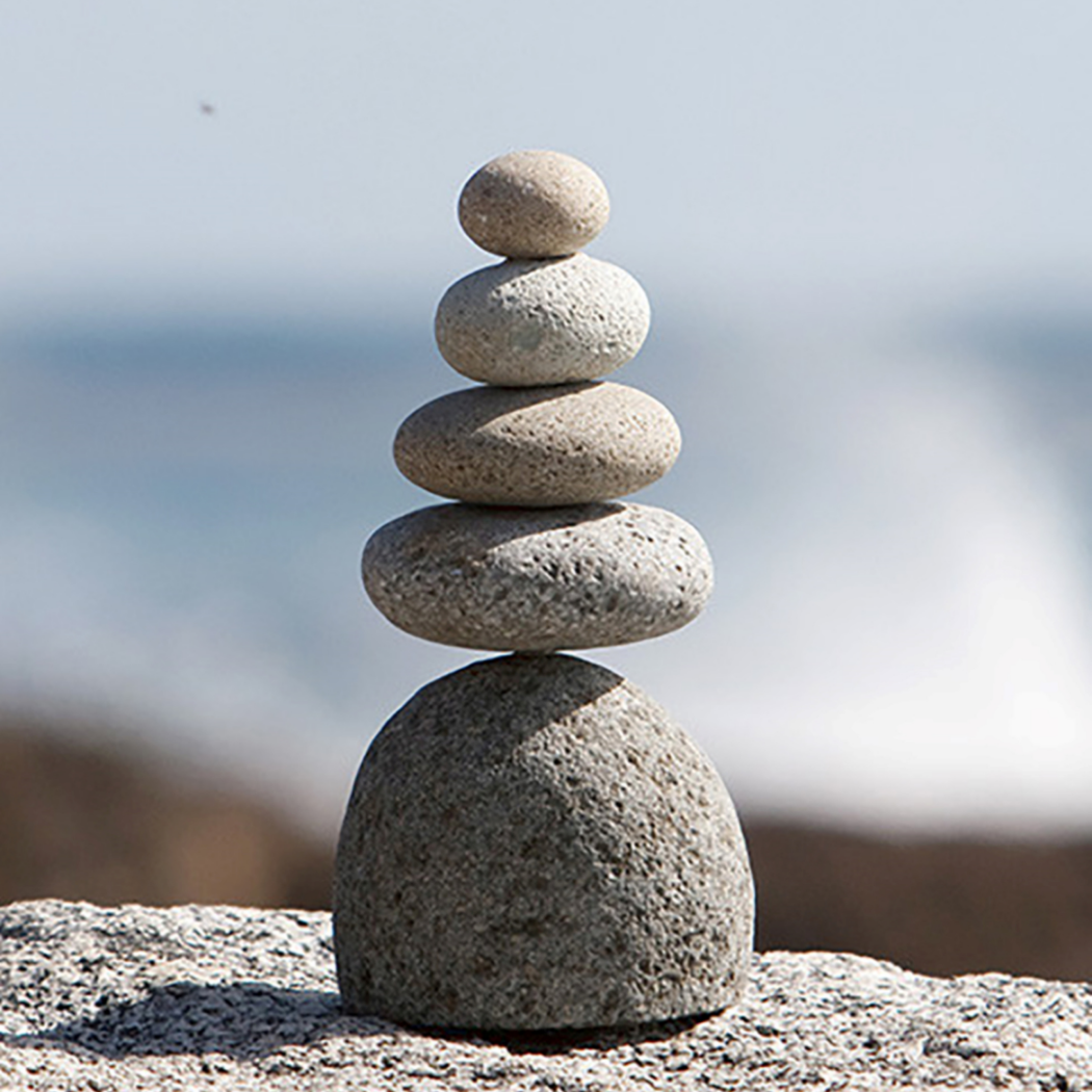 Natürliche Ästhetik: Das Set besteht aus drei individuell geschichteten Steinmännchen, die Ruhe und Balance ausstrahlen.