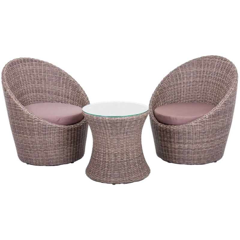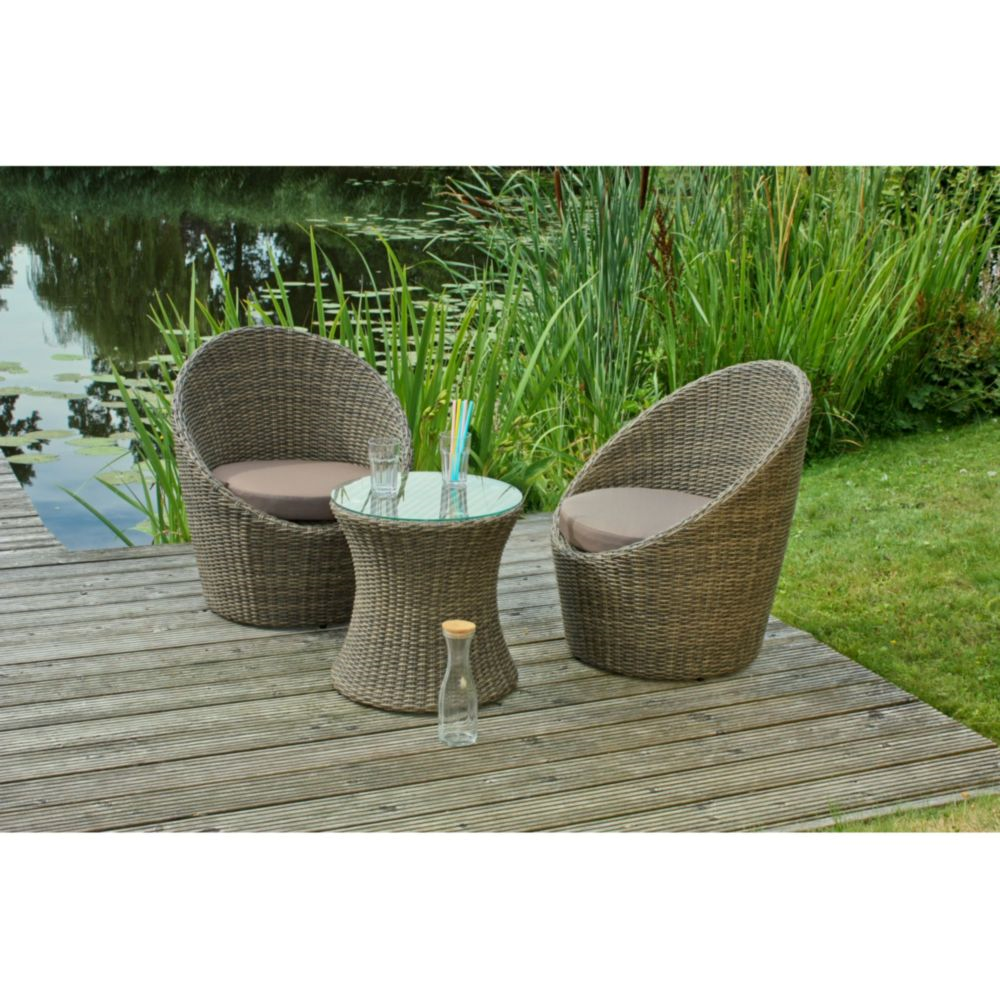3-teiliges Club-Set – 2 Sessel + Glastisch, wetterfest und pflegeleicht