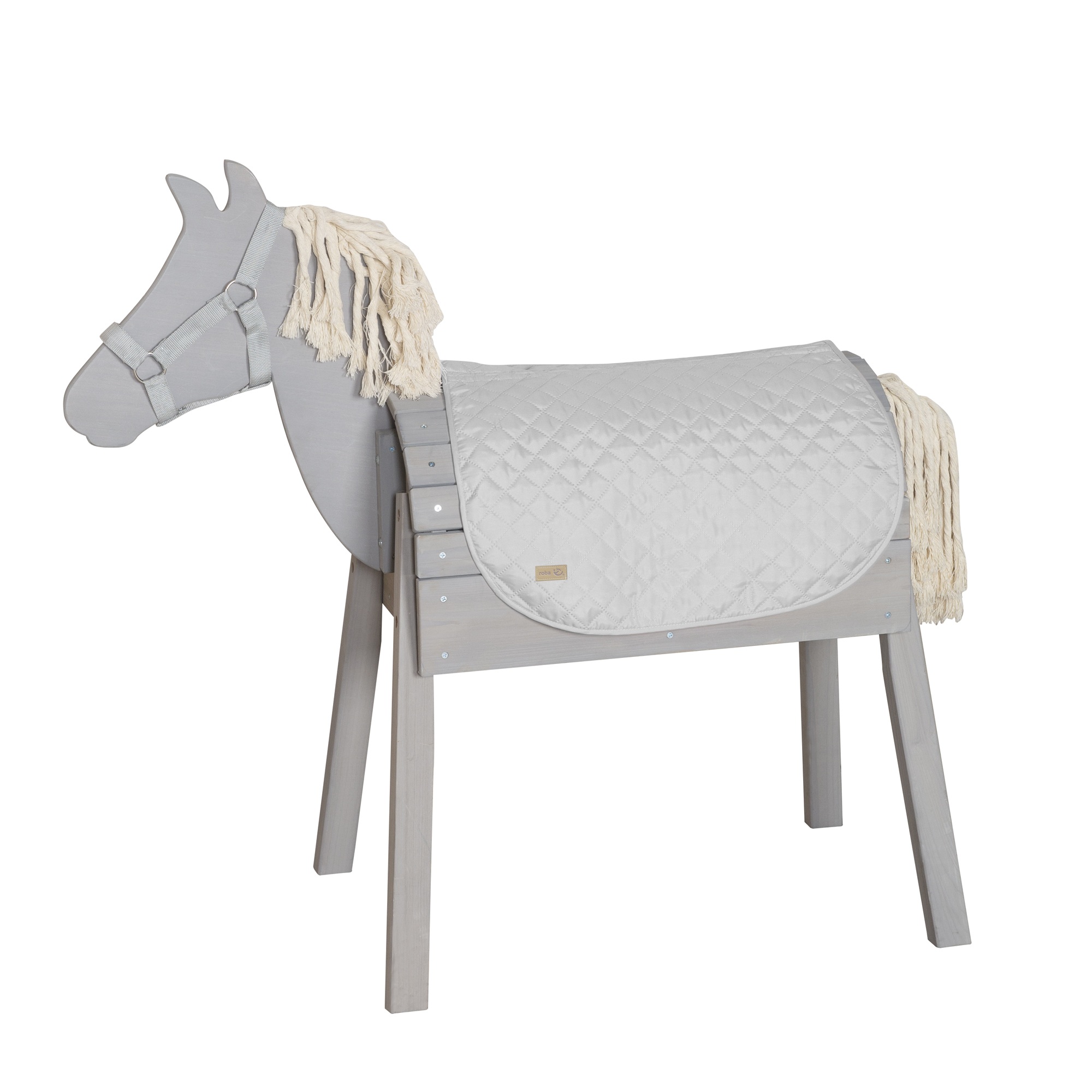 Gefertigt aus strapazierfähigen Materialien, trotzt das Zubehör dem Outdoor-Einsatz. Die weich gepolsterte Sattelunterlage und das passende Halfter lassen sich kinderleicht anlegen. Wählen Sie zwischen dem verspielten Rosa oder dem modernen, schlichten Grau, um das Holzpferd ganz individuell zu stylen.