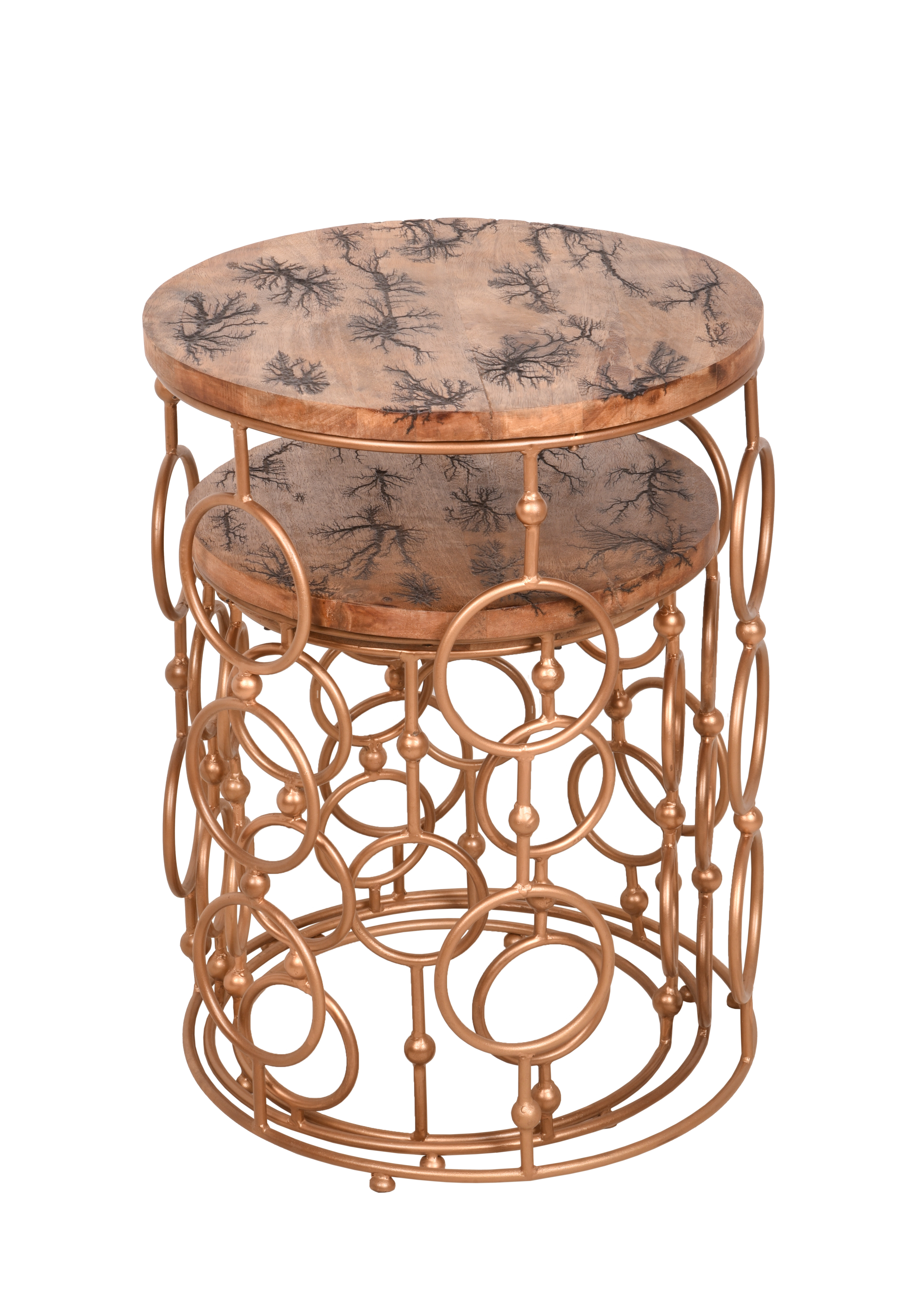 Das Beistelltisch-Set NAVIN besteht aus drei Tischen in unterschiedlichen Größen, gefertigt aus hochwertigem Mango-Holz und robustem Eisen. Die lackierte Holzoberfläche kombiniert mit dem schwarzen Eisenrahmen verleiht den Tischen einen modernen und zugleich eleganten Look.