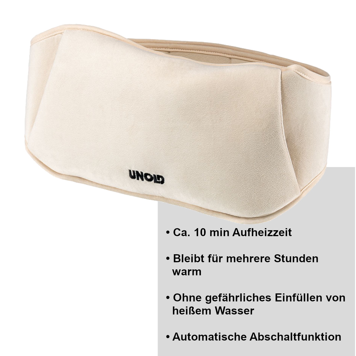 Die kabellose elektrische Wärmflasche ist sicher in der Handhabung – ganz ohne gefährliches Einfüllen von heißem Wasser wie bei klassischen Wärmflaschen. Der Überhitzungsschutz mit automatische Abschaltfunktion beim Erreichen von ca. 65 °C sorgt für zusätzliche Sicherheit.