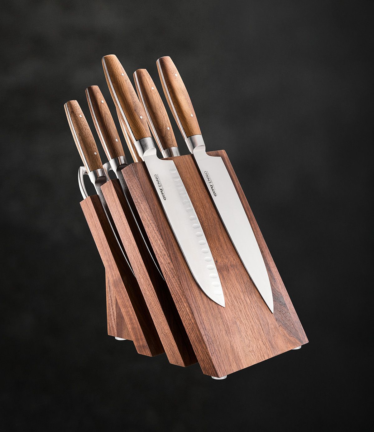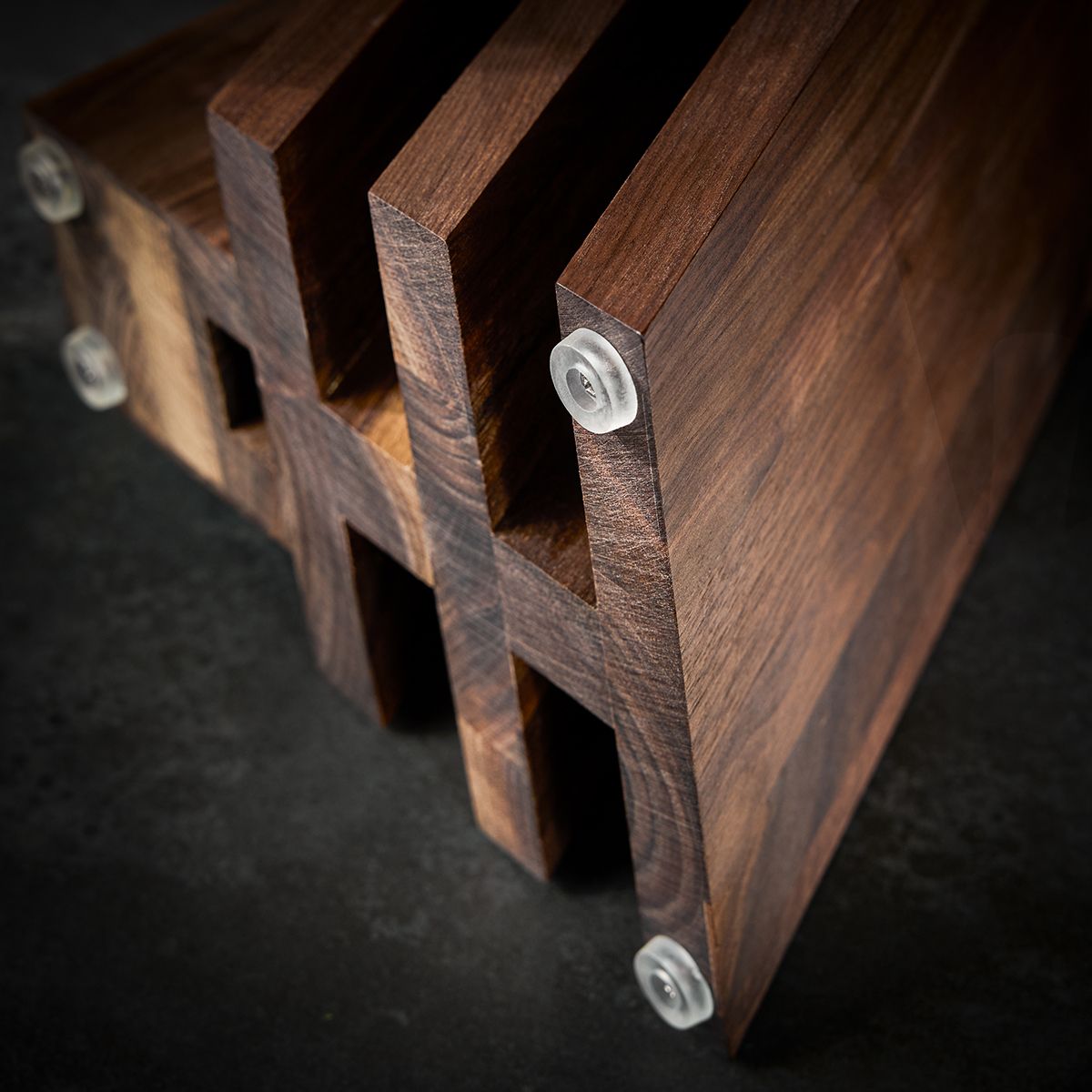 - edler Design Magnet-Messerblock aus hochwertigem Walnussholz