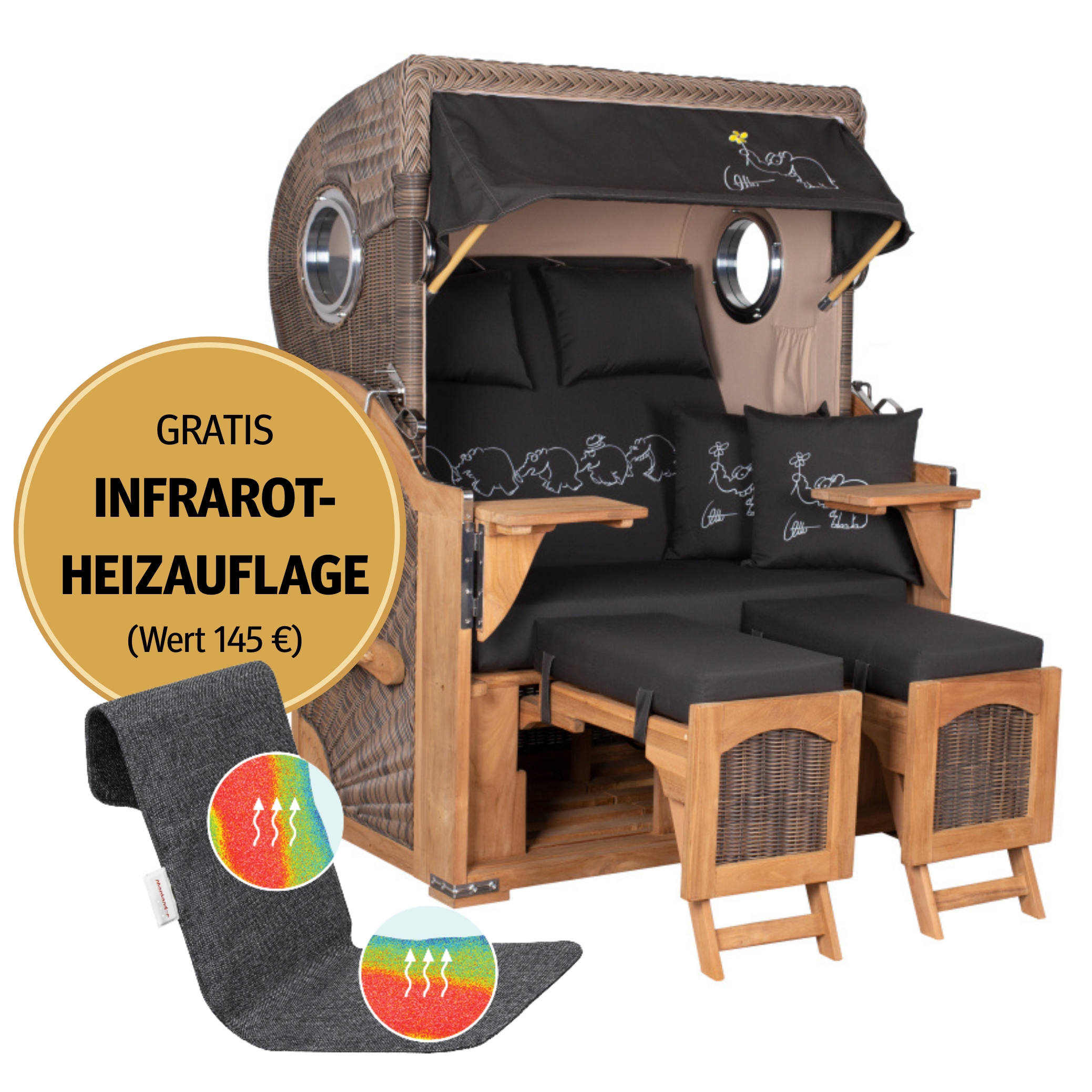 Strandkorb 2-Sitzer Komplettset | Teakholz – Düne Ottifant